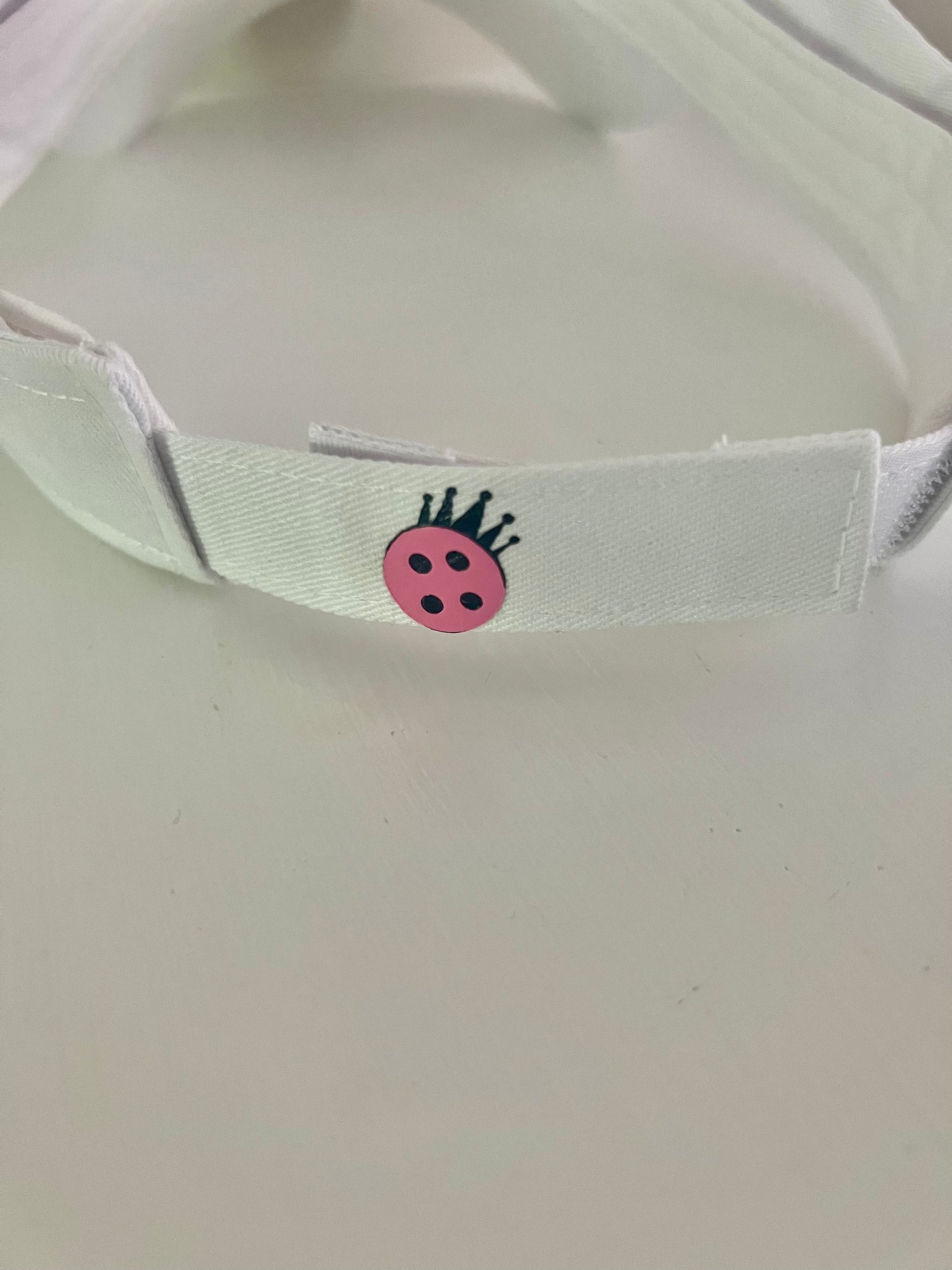 Let ‘em know you are there for all the PICKLEBALL! This Court Queen white visor features crossed pickleball paddles and a heart pickleball, a heart monogram on each side and the signature Court Queen logo on the back band.