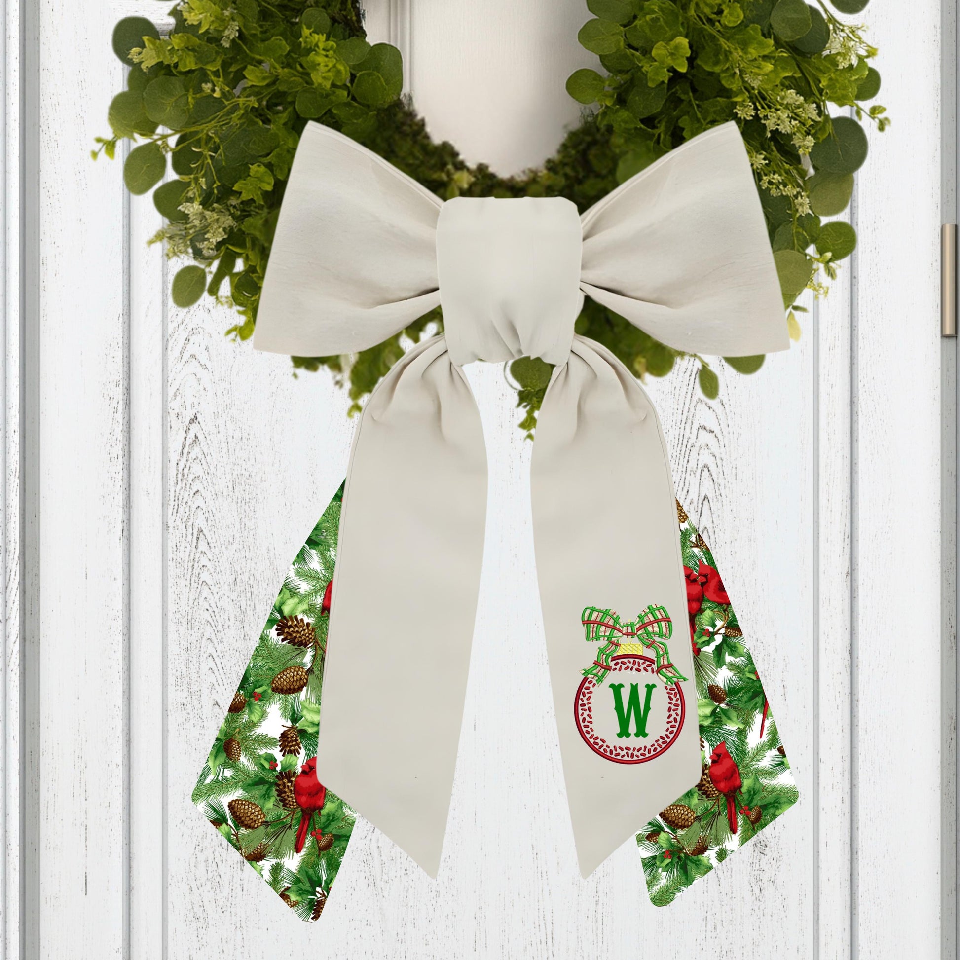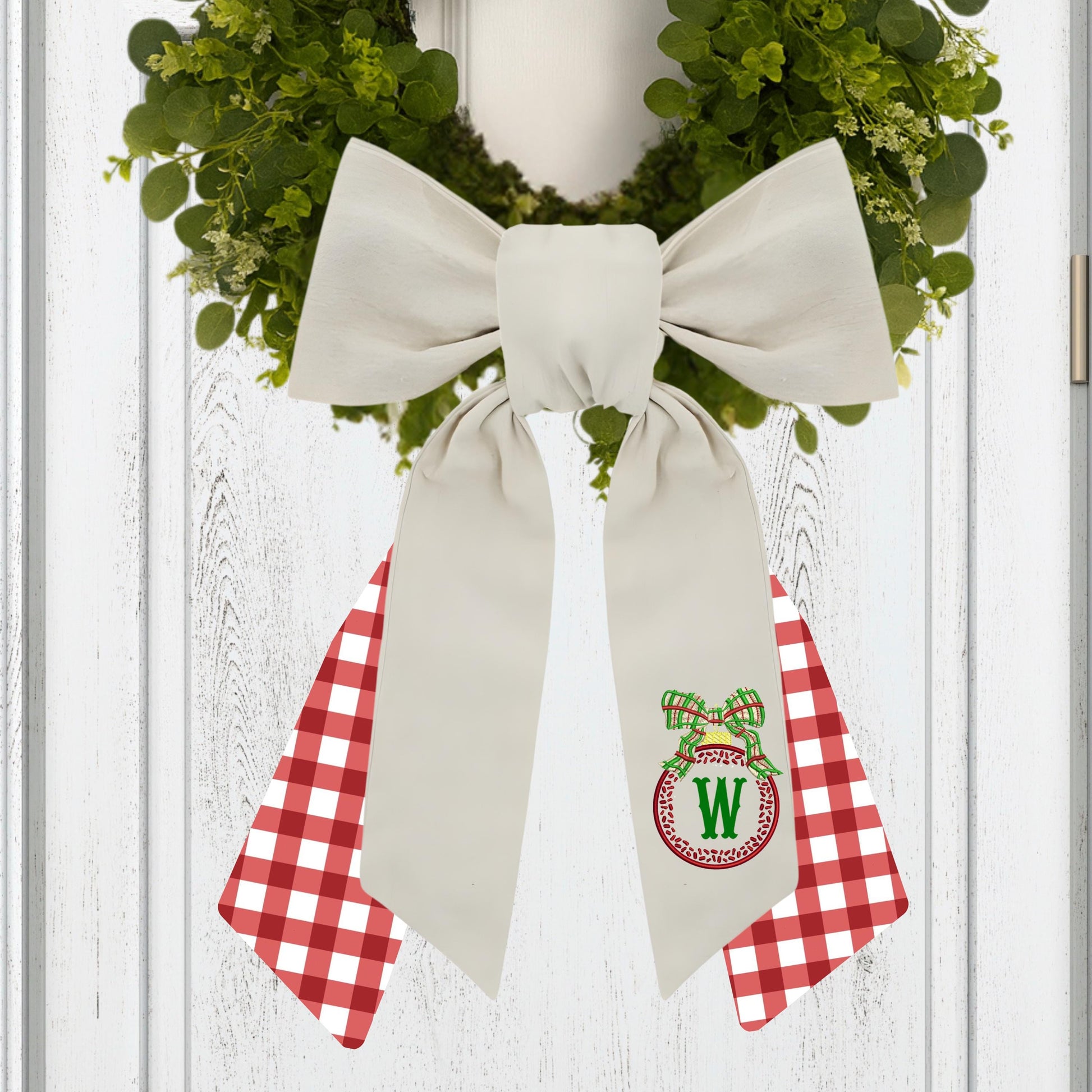 Embroidered Christmas Wreath Sash: Coordinating Sash Available - Holiday Door Hanger - Personalized Ornament Decor