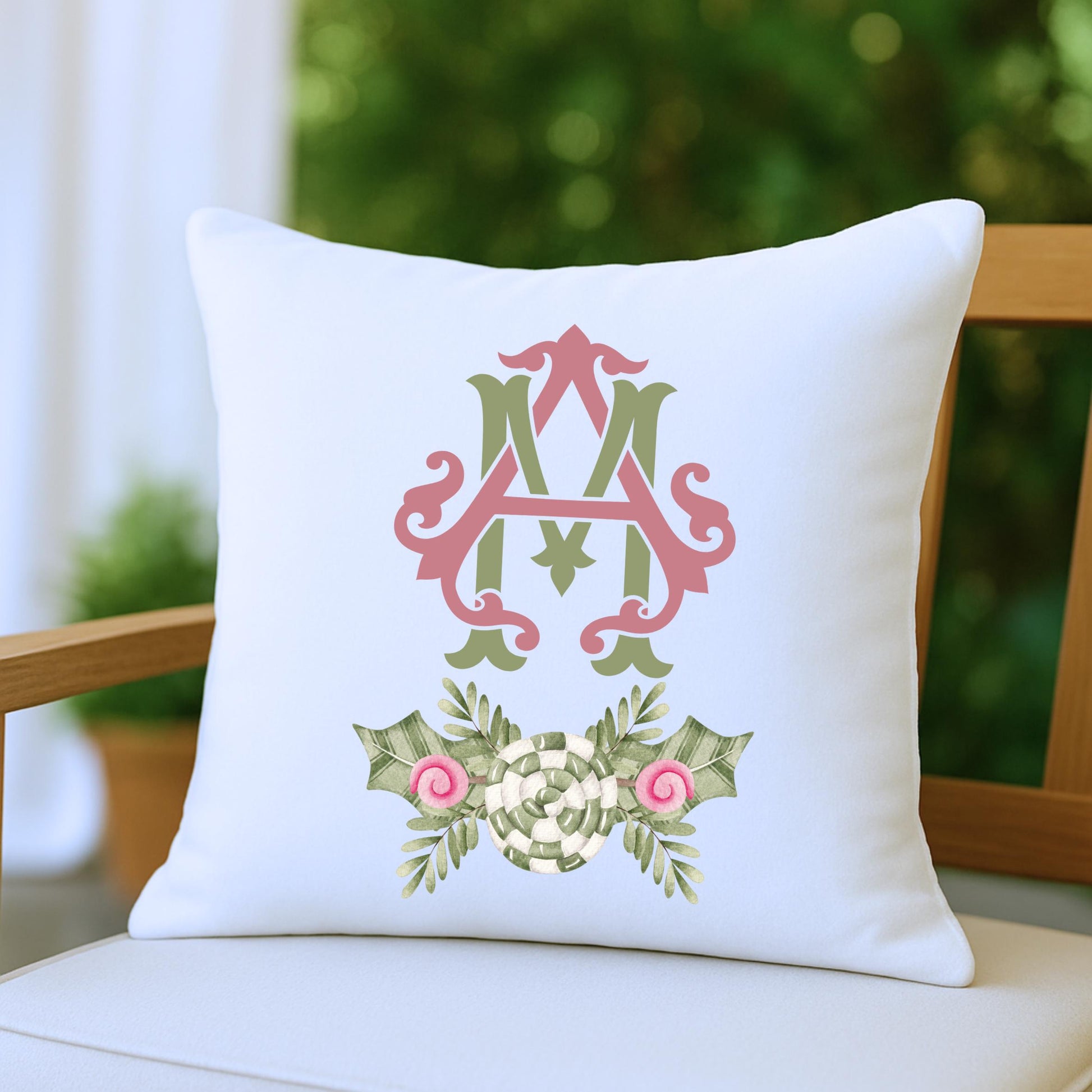 Personalized Pillow Cover, Monogram, Custom Pillow, Modern Preppy Pillows, Minimalist Classy, Topiary, Initial, Antique Vintage Plant
