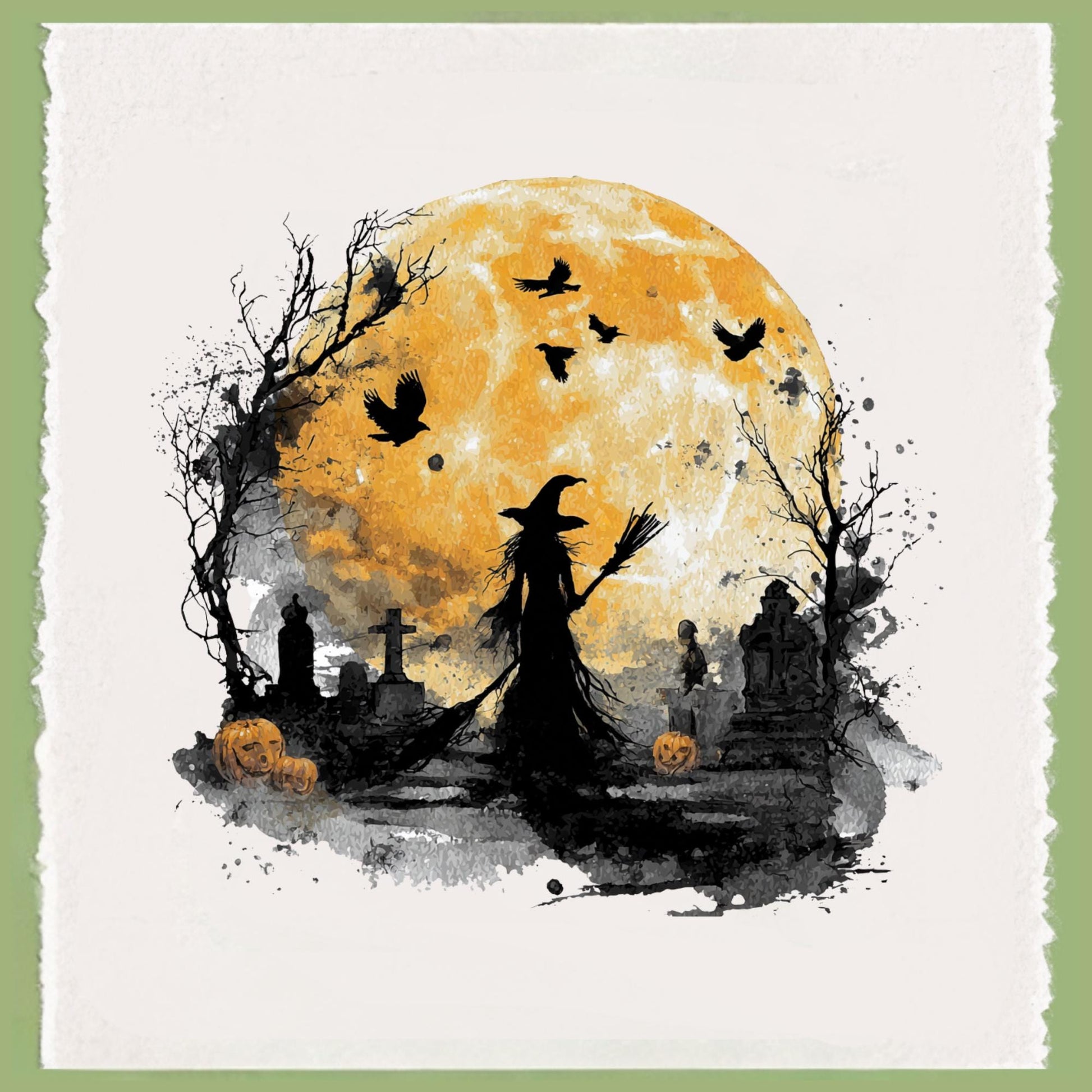 Watercolor Witch Tea Towel Personalized Kitchen Decor, Halloween Pumpkin Accent