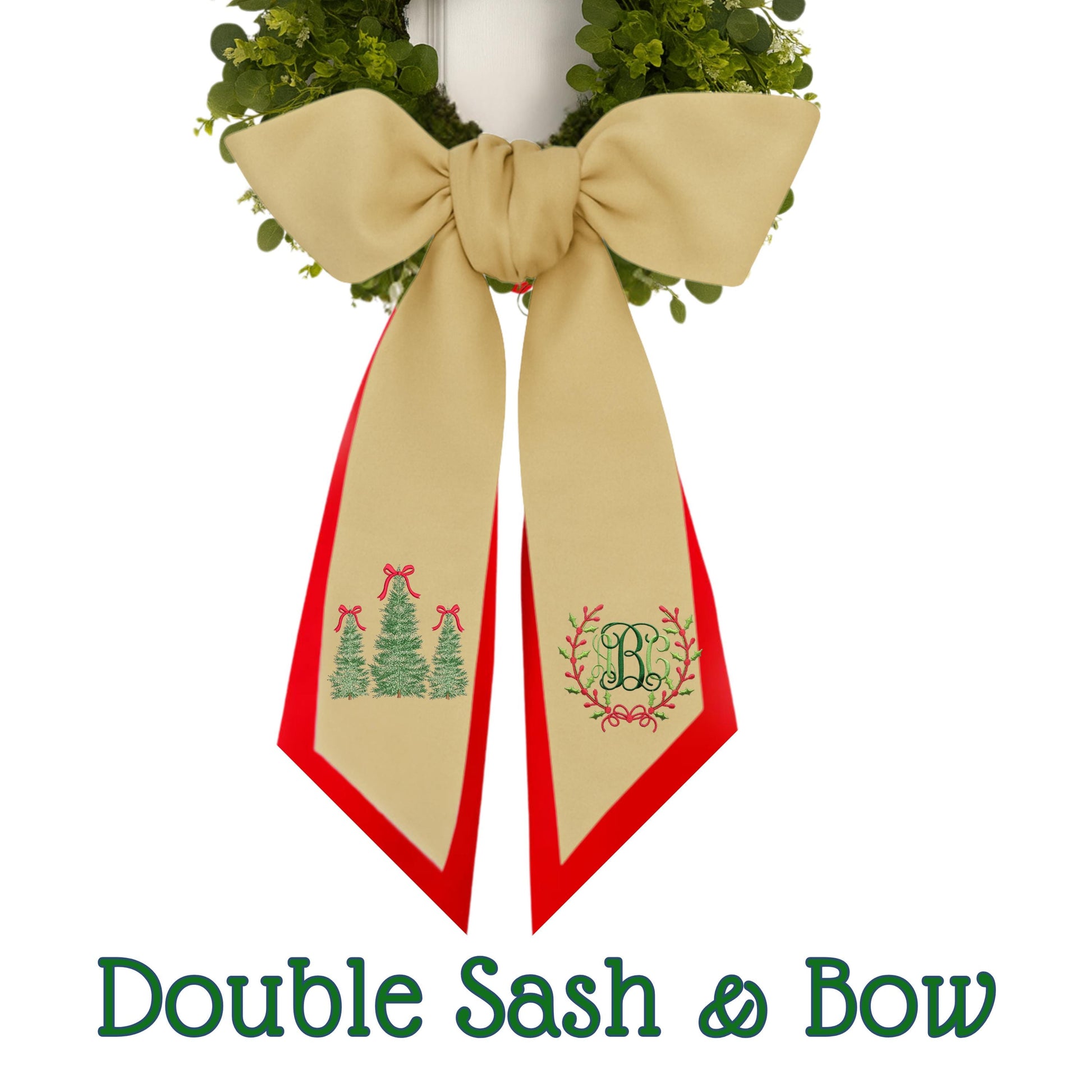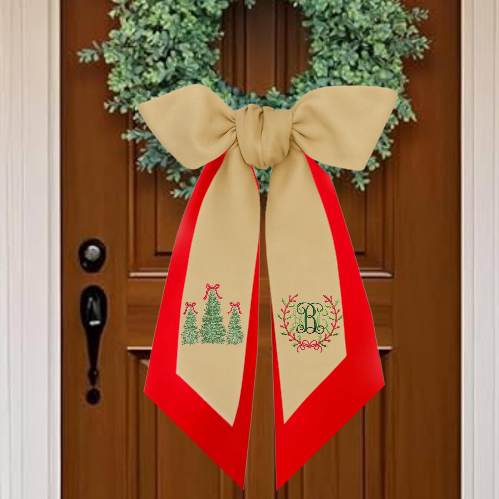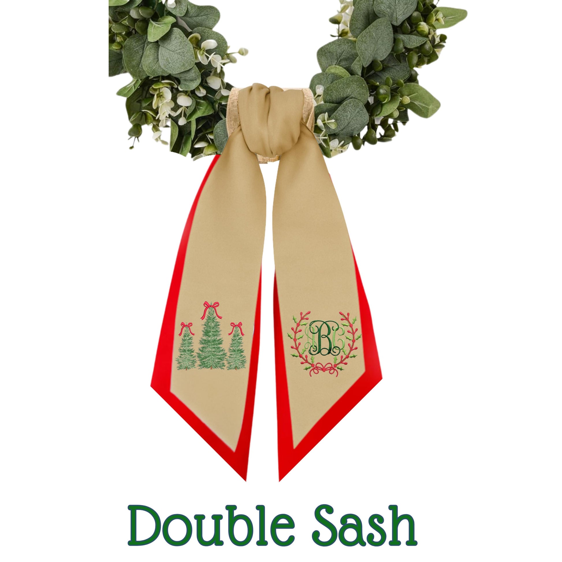 Embroidered Monogram Holiday Wreath Sash: Personalized Christmas Door Front Porch Decor