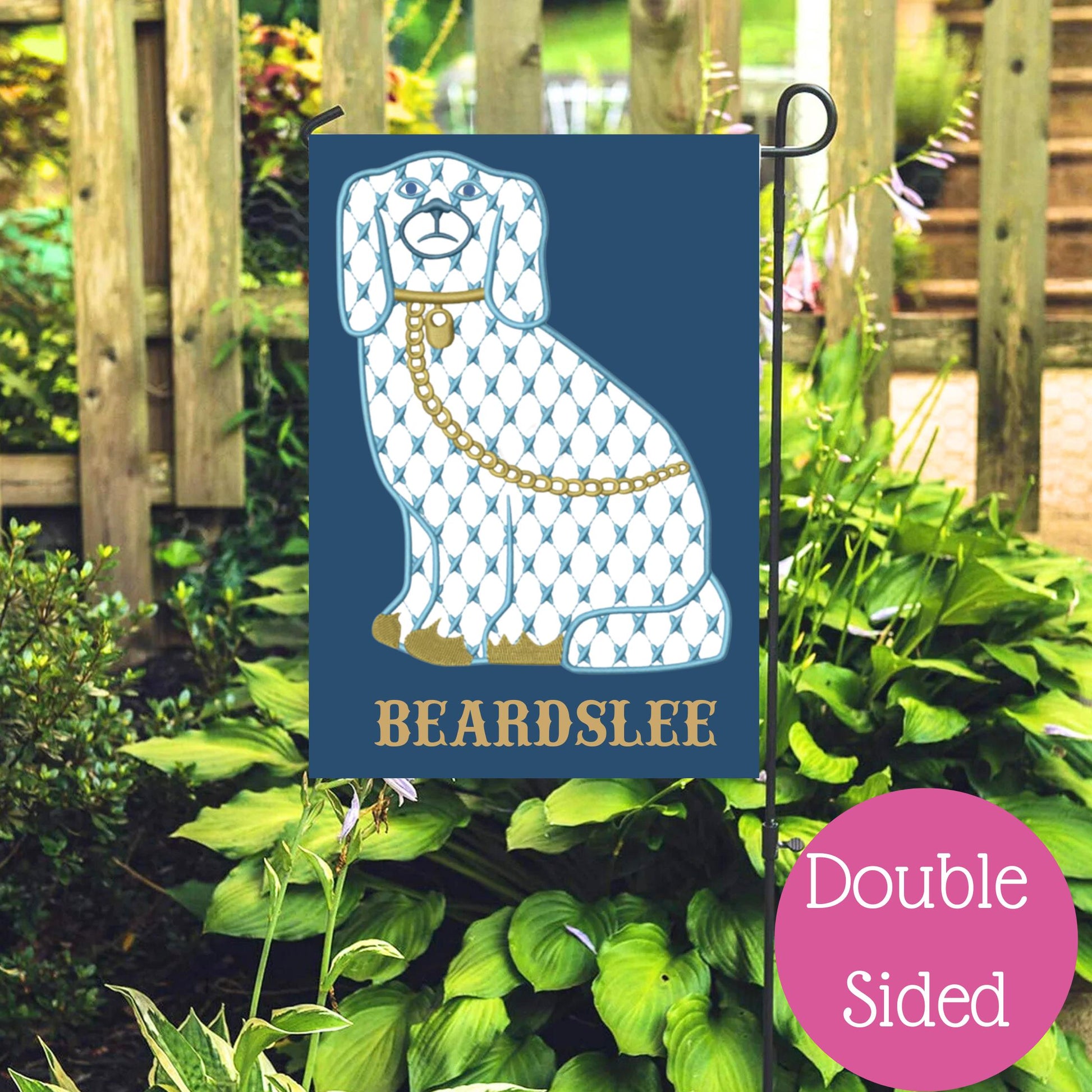 Elevate your outdoor space with our Grand Millennial Personalized Yard Flags! Featuring timeless chinoiserie-inspired designs, these double-sided, 12" x 18" garden flags are perfect for adding a touch of classic elegance to your home. Choose from pineapple, ginger jar, bee wreath, or Staffordshire dog designs—each customizable with a monogram or family name.